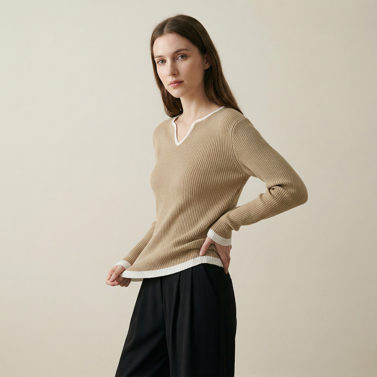 بلوزة محاكة بياقة مفتوحة