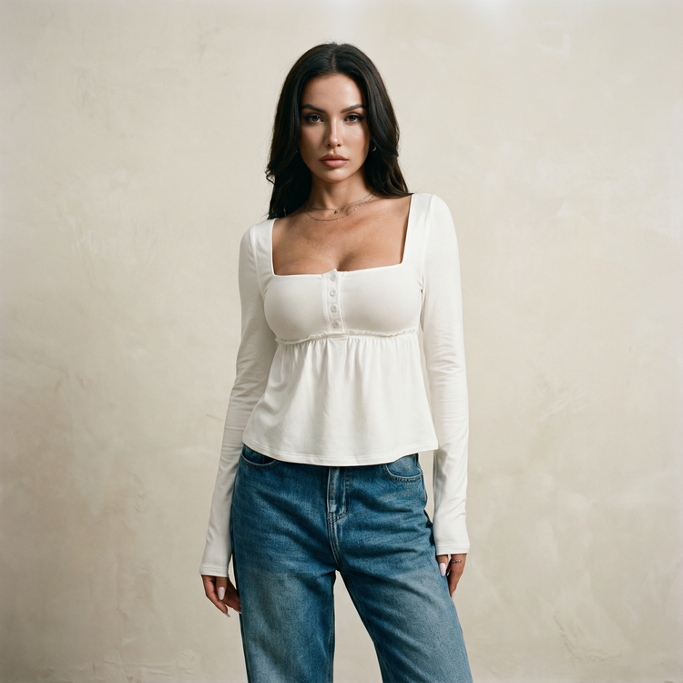 توب بياقة مربعة وقصّة واسعة