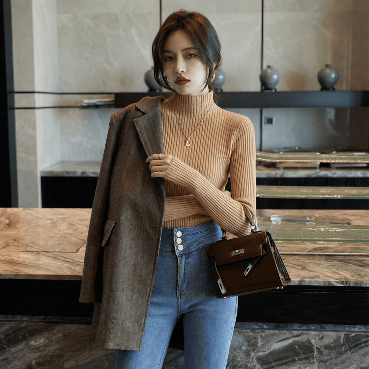 مصنوع من خامة مزيج سبانديكس ناعمة ومريحة. سويتر ناعم وفاخر بقصّة مضلّعة، وينسّق بسهولة مع أي لوك—جينز، تنورة، أو جاكيت رسمي