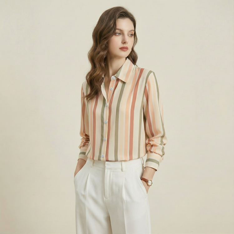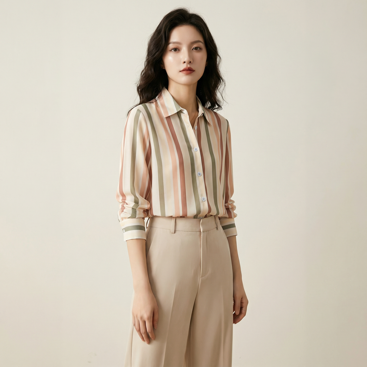 قميص أنيق بتفاصيل مخطّطة تمنحك أسلوب ناعم ومظهر مرتّب يناسب يومك من الصباح للمساء